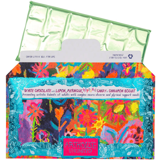 "Sunflowers In The Hills" White Chocolate Bar with Lemon Meringue, Popping Candy & Cinnamon Biscuit Crunch