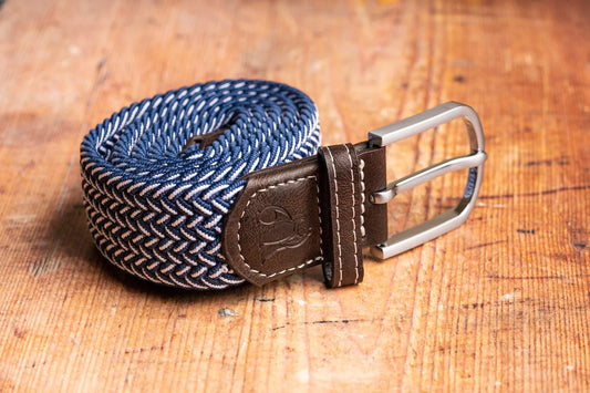 Swole Panda - Navy/Beige ZigZag Woven Belt