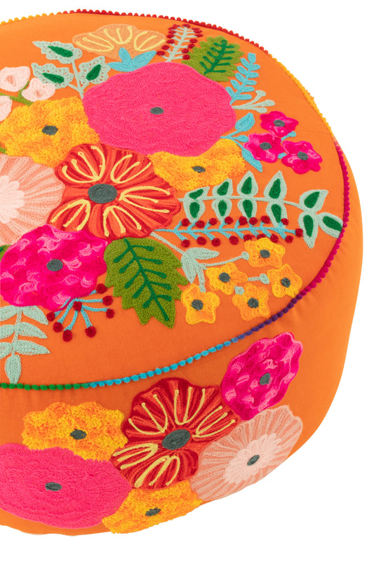 Orange Flowers Cushion W/Tassels