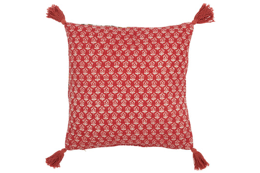 Red Flowers Cushion W/Tassels