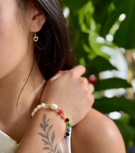 14ct Gold Plated Fresh Water Pearl Healing Stone Bracelet
