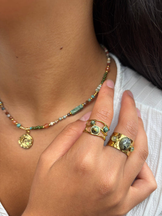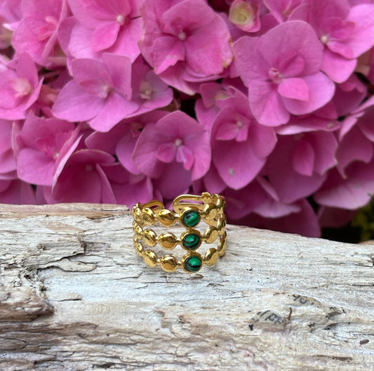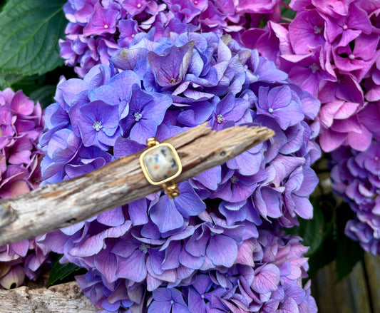 18ct Gold Plated Square Dalmatian Jasper Ring