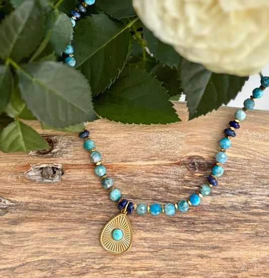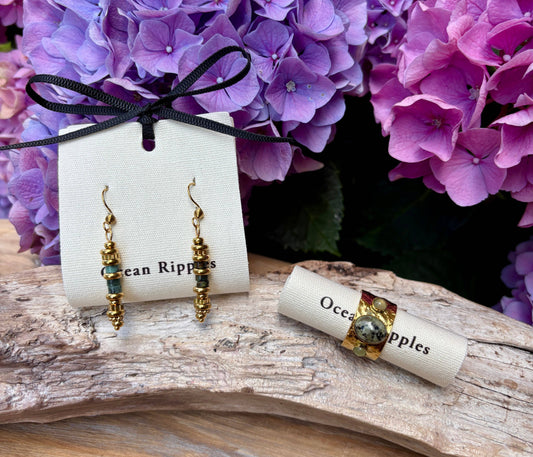 18ct Gold Plated African Turquoise Chips Drop Earrings