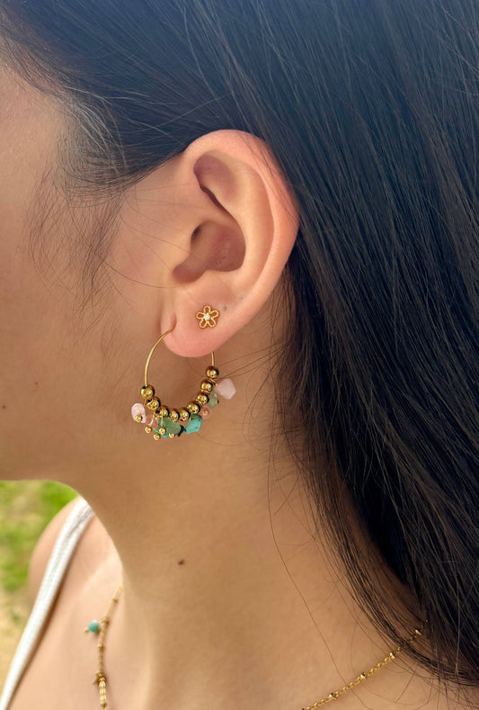 18ct Gold Plated Gemstone Cluster Hoop Earrings