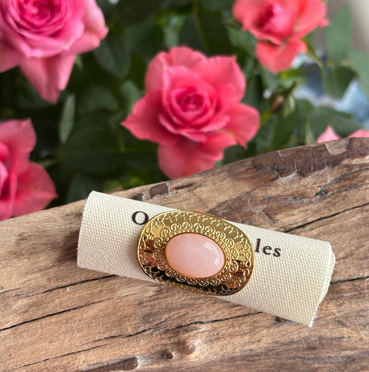 18ct Gold Plated Rose Quartz Shield Adjustable Ring