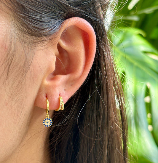 18ct Gold Plated Cubic Zirconia Sun Disc Huggie Earrings