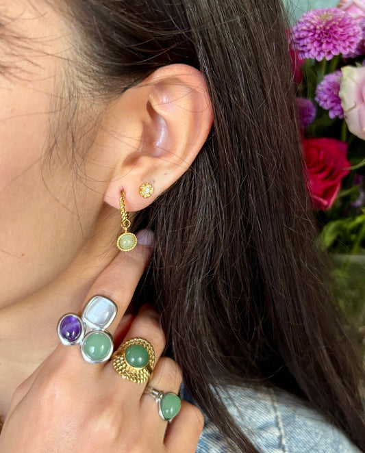 18ct Gold Plated Aventurine Twisted Hoop Earrings