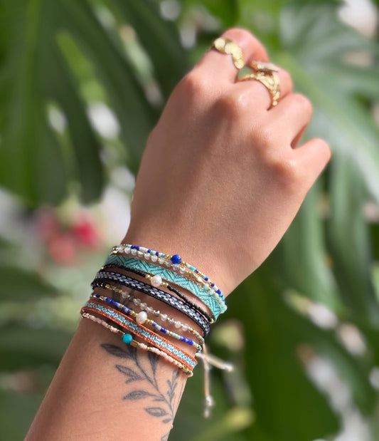 18ct Gold Plated African Turquoise Battered Adjustable Ring