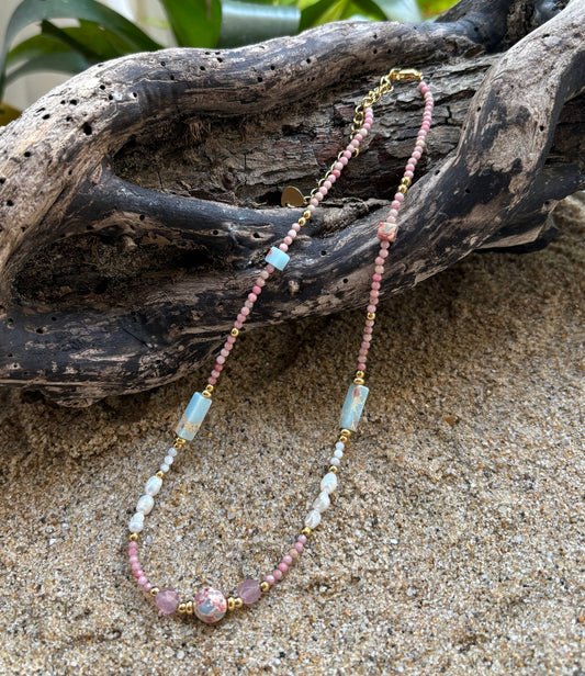 18ct Gold Plated Amazonite Feather Pendant Necklace