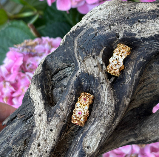 18ct Gold Plated Cubic Zirconia Flower Lace Ring