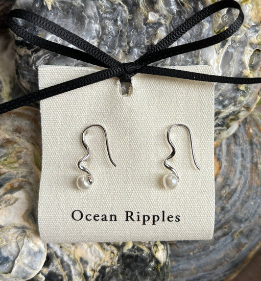 14ct Gold Plated Fresh Water Pearl Zirconia Zigzag Earrings