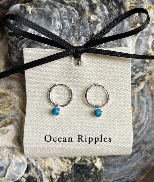 925 Sterling Silver Turquoise Drop Huggie Earrings