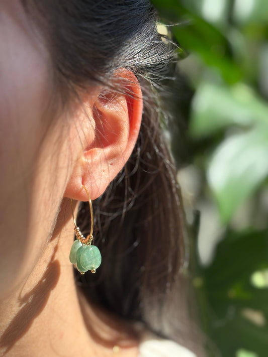 18ct Gold Plated Green Aventurine Cluster Hoop Earrings