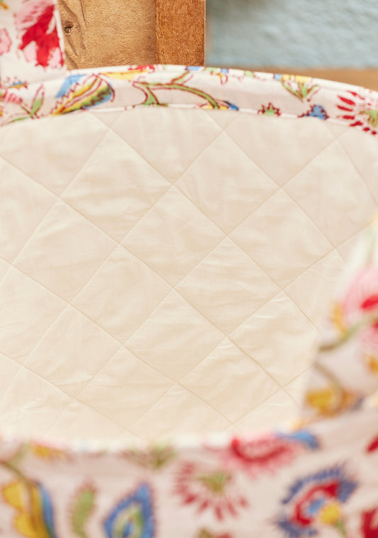 Birds/Flowers Cotton Velvet Cushion - Pink
