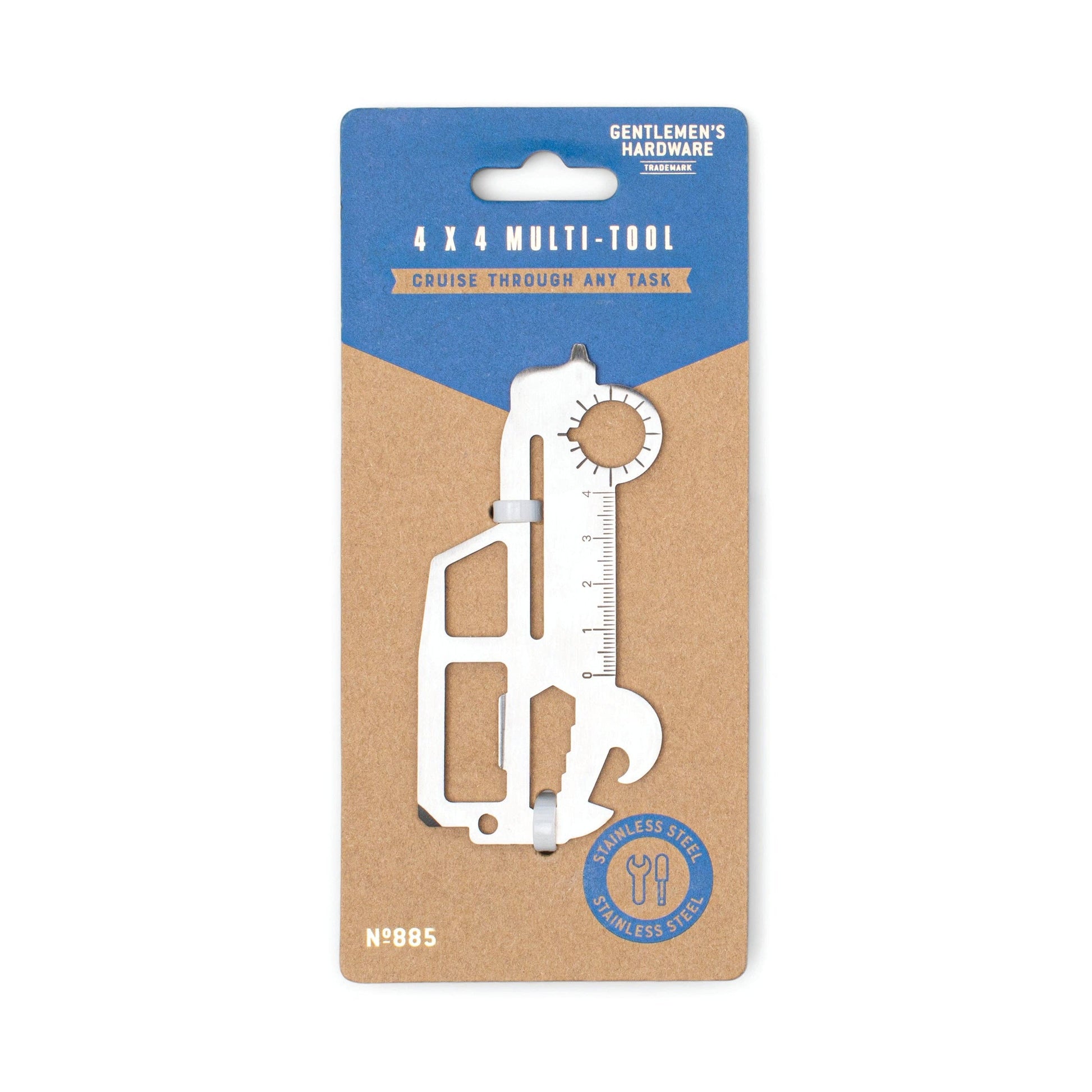 4X4 mutli tool, with bottle opener, screw driver, ruler and many other functions.