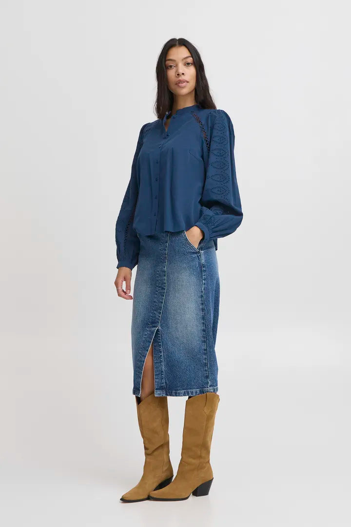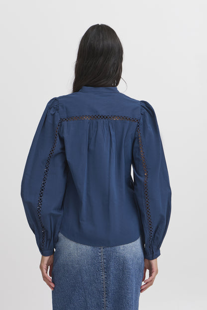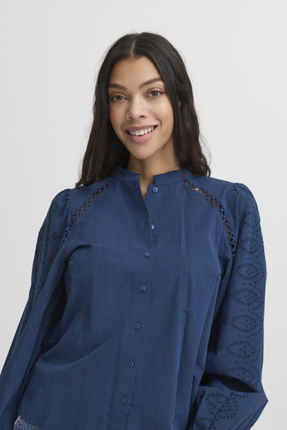 The B.young Frankie Shirt is a stylish and versatile addition to any wardrobe. Made from fair cotton and featuring a navy blue color, this shirt is both comfortable and fashionable. Perfect for any occasion, its classic design is sure to elevate your look.