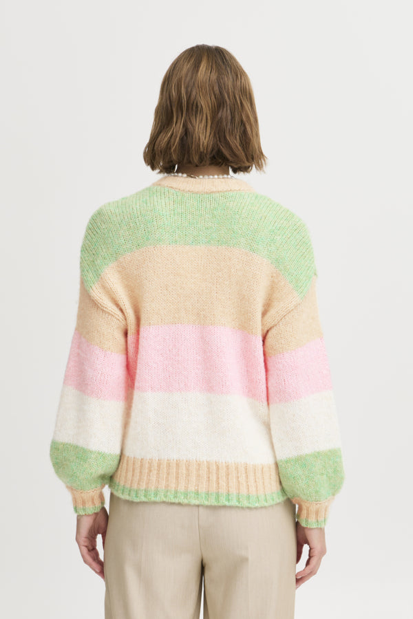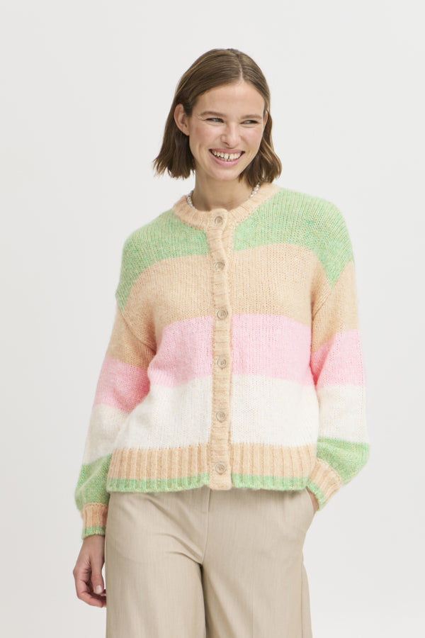 Striped cardigan knit from B.young. With a wool mix composition this is a great piece for this season, with a relaxed style and soft feel. Made from recycled fibers.