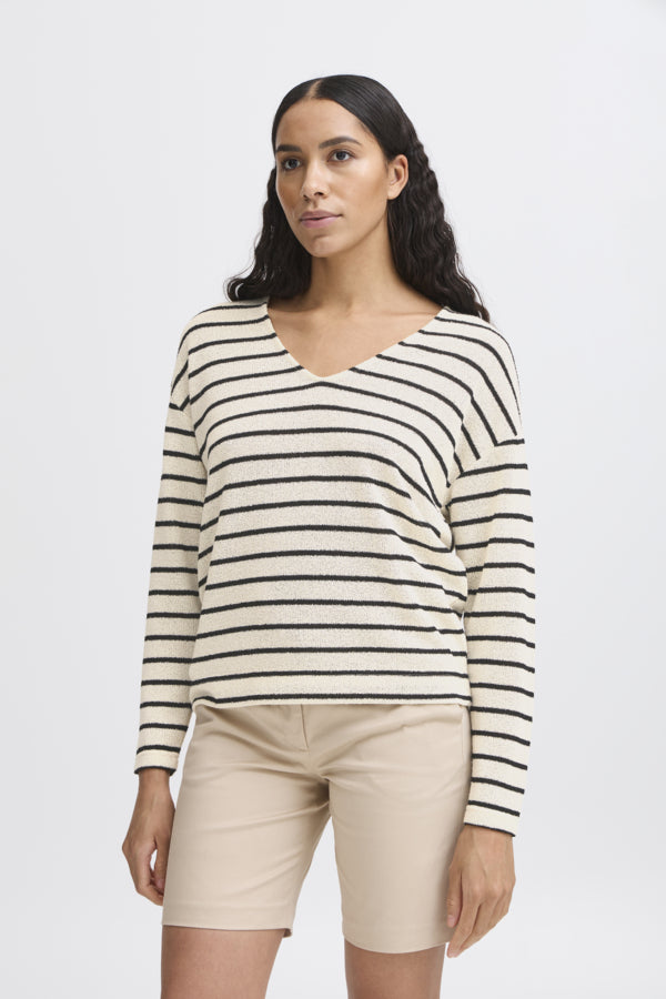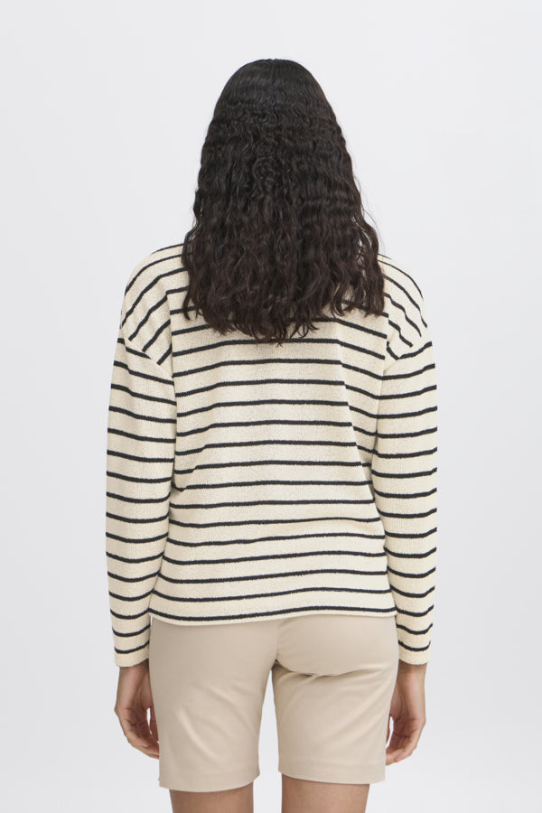 The B.young Sif Stripe Pullover is a loose fitted, birch-coloured pullover that is both stylish and comfortable. With its classic stripe design, it is the perfect piece to add to your spring wardrobe. Made by B.young, a trusted brand in fashion, this pullover is a must-have for any fashion-forward individual.
