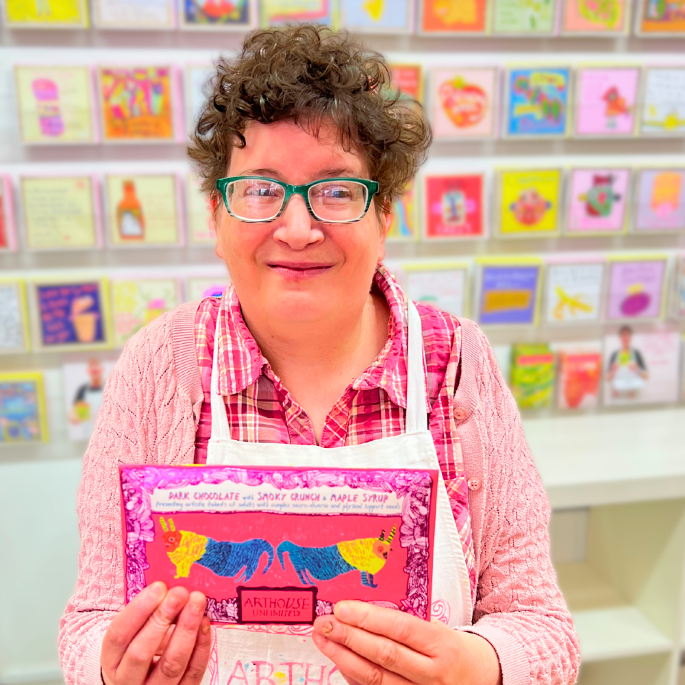 The recyclable paper envelope features a fun, fluro design with a mythical creature, whilst the bar inside is wrapped in bright coloured foil. The design is then finished with the ARTHOUSE Unlimited signature foiled frame.