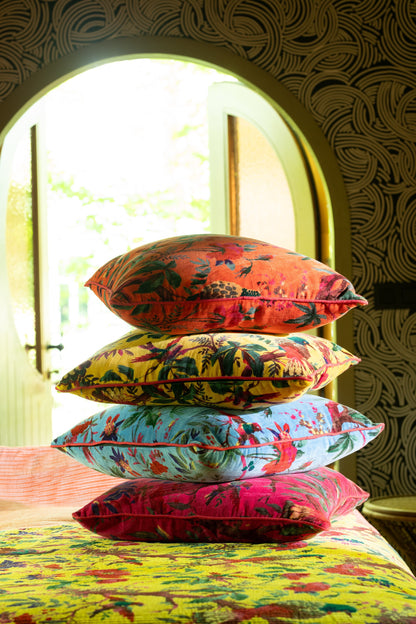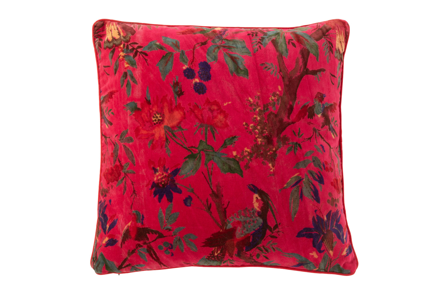Birds/Flowers Cotton Velvet Cushion - Pink