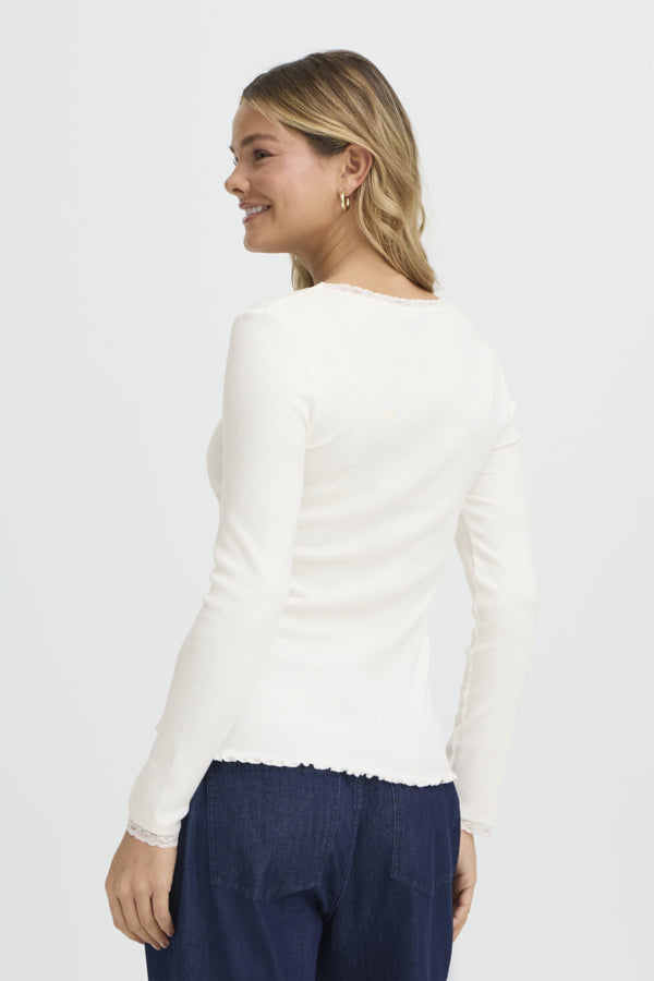 Elevate your everyday wardrobe with this timeless Fransa long sleeve tee, crafted from soft cotton for all-day comfort. The classic antique white hue pairs effortlessly with any outfit, while a charming detail at the hem adds subtle sophistication. A versatile staple that transcends seasons, this piece delivers understated elegance and reliable quality you can depend on.