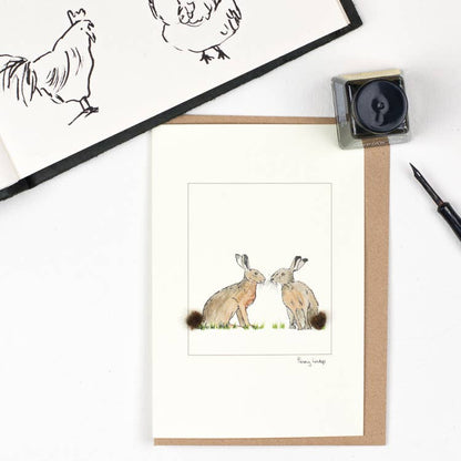Hares Greeting Card with Wool Finish | C6 Greeting Card