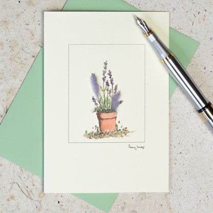 This everyday greeting card features a pot plant full of blooming lavender, a simple design that makes it a lovely gift for any occasion. The lavender illustration is highlighted with an added puff of purple wool, which creates a unique 3D effect for which the greeting cards from UK based paper products and stationery brand, Papersheep, have become well known.