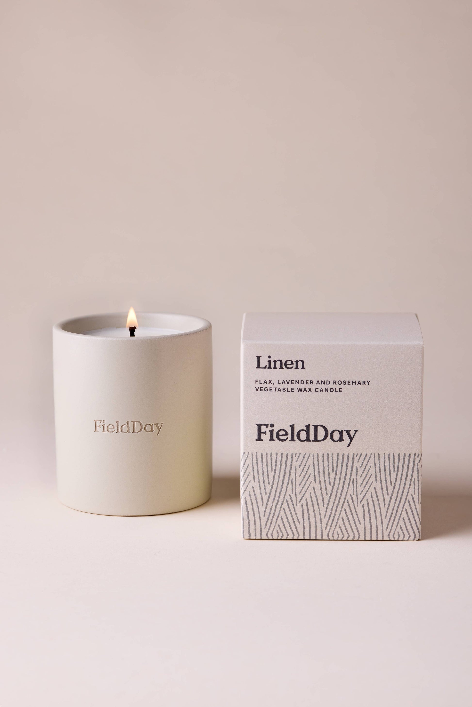 Flax, Lavender & Rosemary Vegetable Wax Candle in a Stoneware Pot.