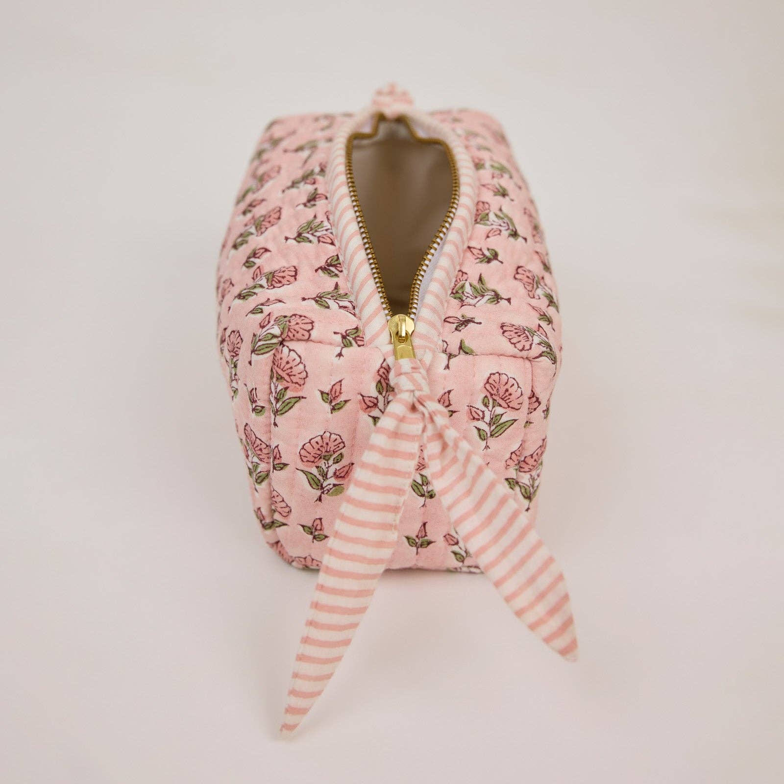 Superbly block printed by master artisans and handcrafted in small batches, this quilted toiletry bag is made using soft luxurious organic cotton and features our signature bock print designs.