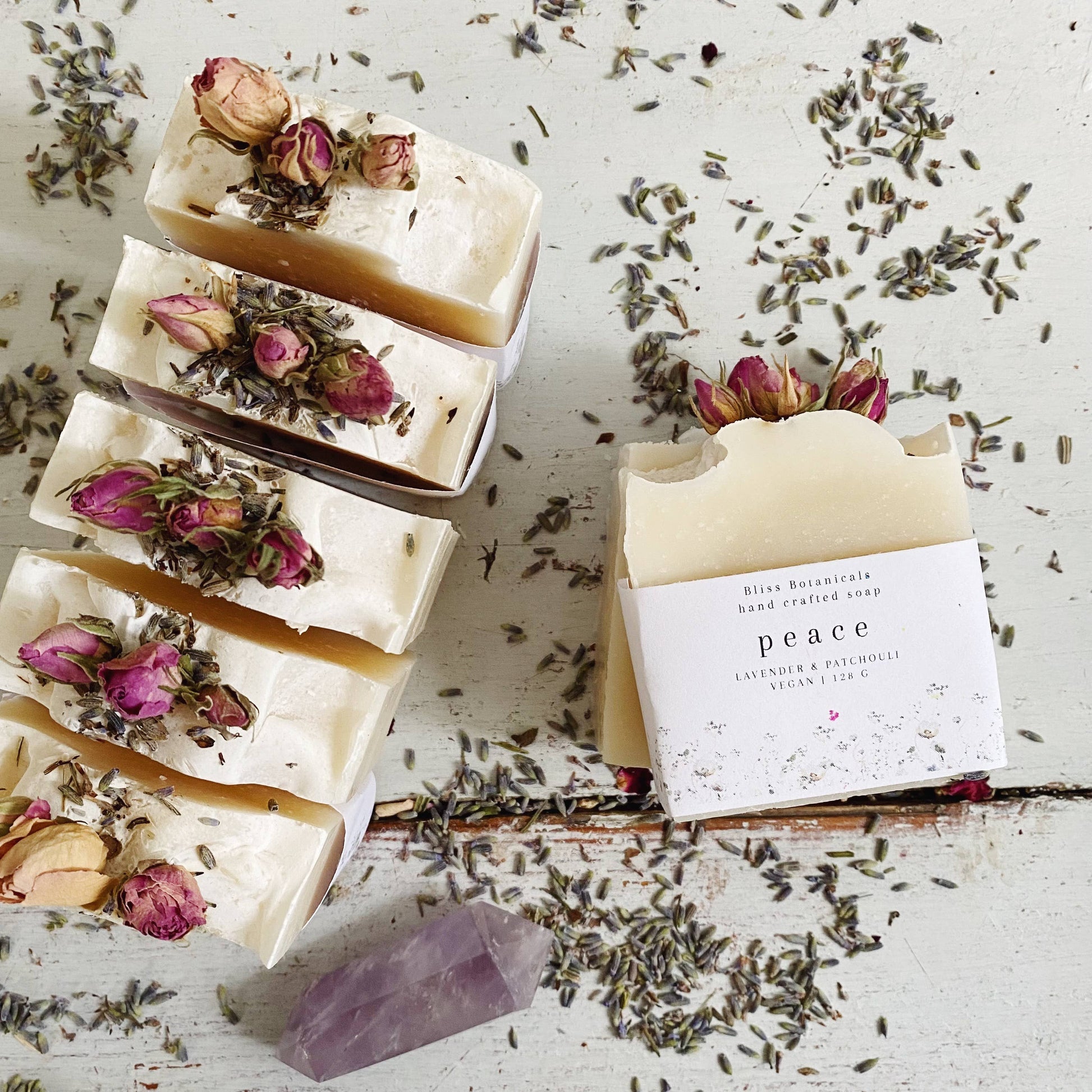 Bliss Botanicals handmade soap is made in very small batches, with lots of love. Using my own recipe which has been formulated to be extra moisturising, and is free from palm oil and suitable for vegans. Each bar weighs approximately 120g.