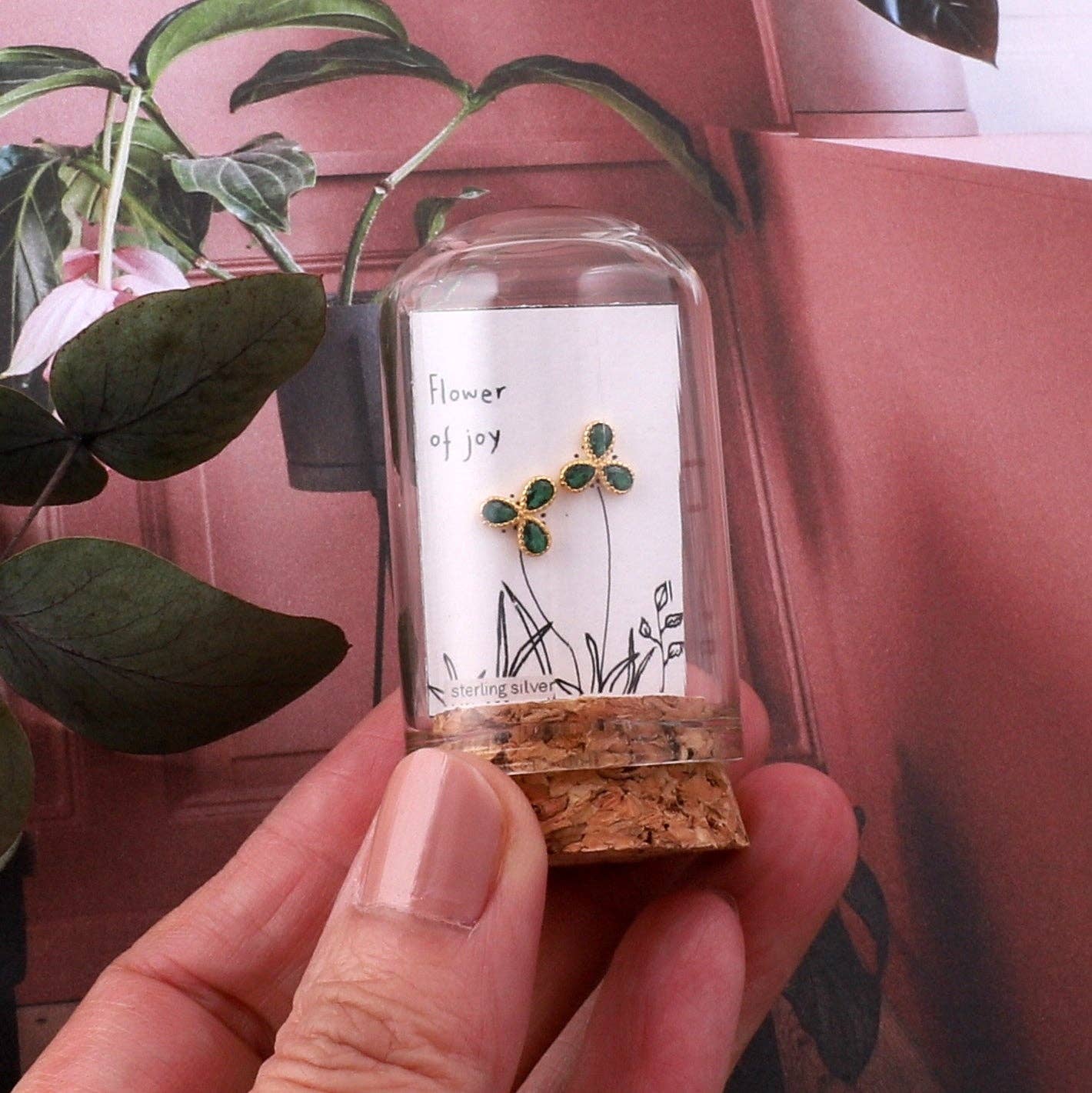 'Flower of joy' three SPIRAL petal green gem GOLD