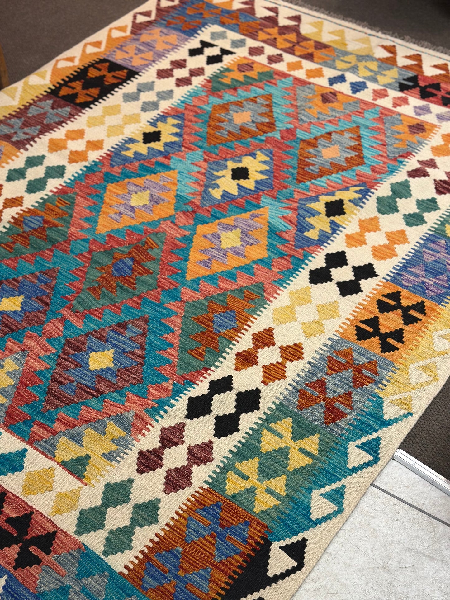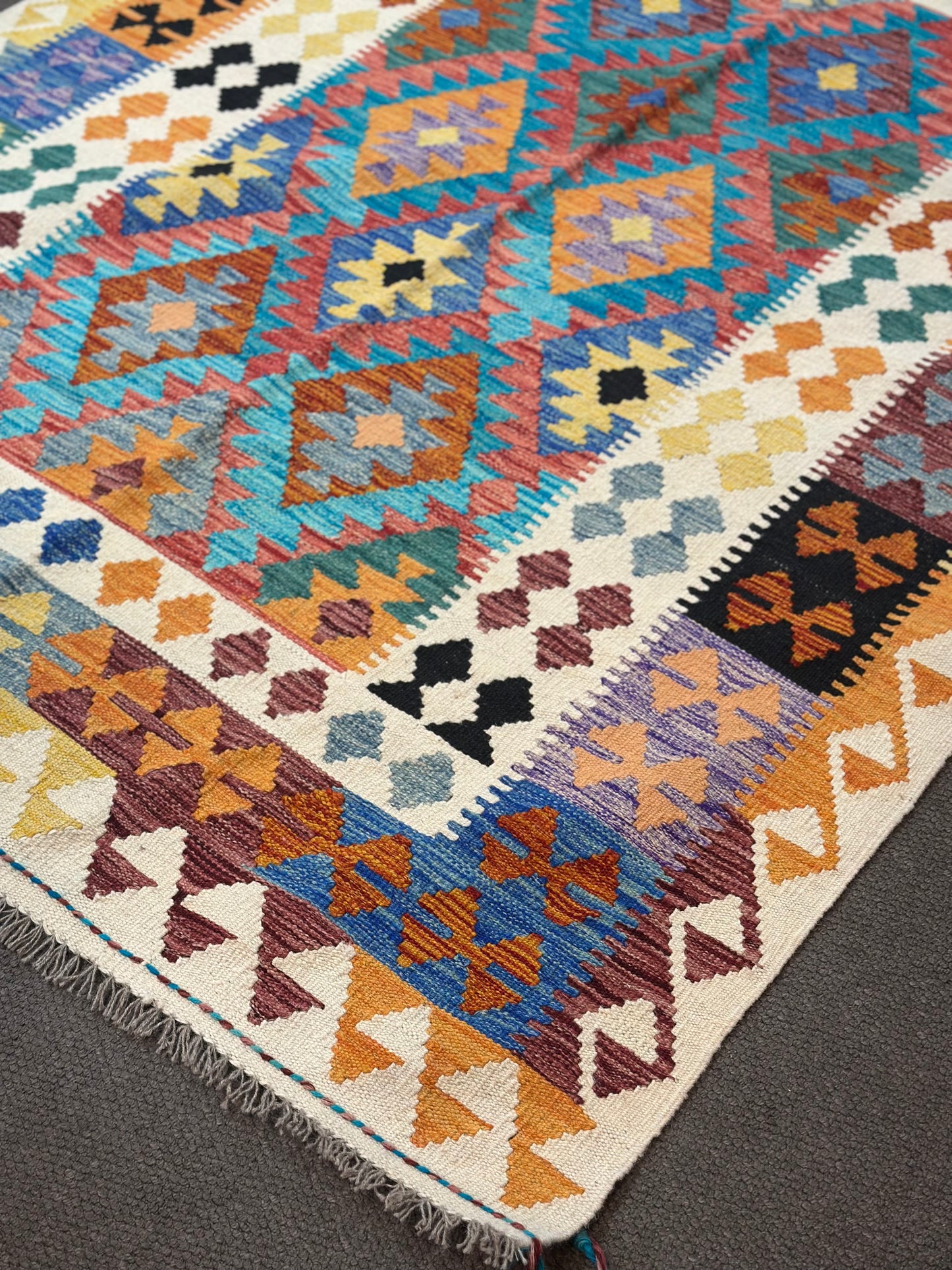 Our biggest rug in-store. 100% wool, vegetable dyed afghan rug. Every rug is different in its own unique way. Will last a lifetime.